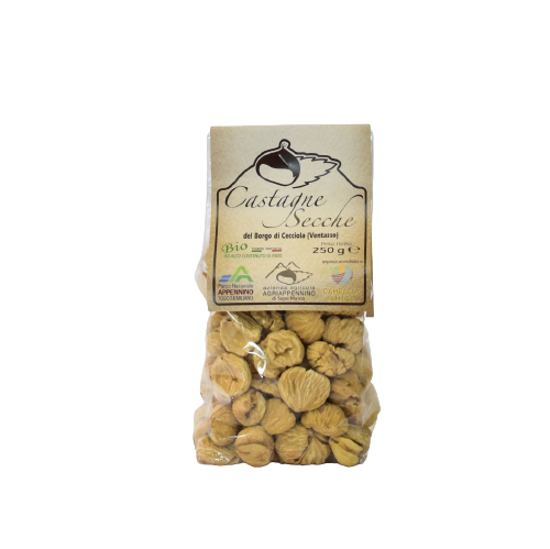 Castagne secche prodotte da Agriappennino ottenuta da castagne raccolte nel proprio castagneto Biologico del borgo di Cecciola situato nel Parco Nazionale dell'Appennino tosco-emiliano.