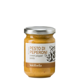 Per questo pesto vengono usati peperoni rossi e dolci ai quali si aggiungono le mandorle tostate, la crema di mandorle e, per compensare, il peperoncino per dare una nota leggermente piccante. Il risultato è un pesto che riesce a mantenere un gusto spiccato ma al contempo dolce e morbido.